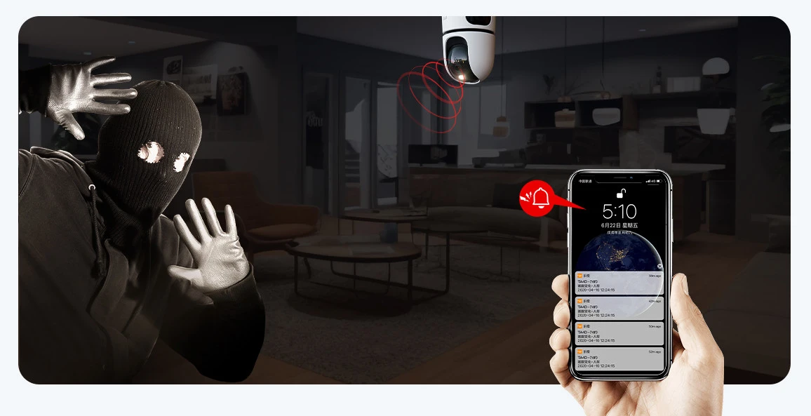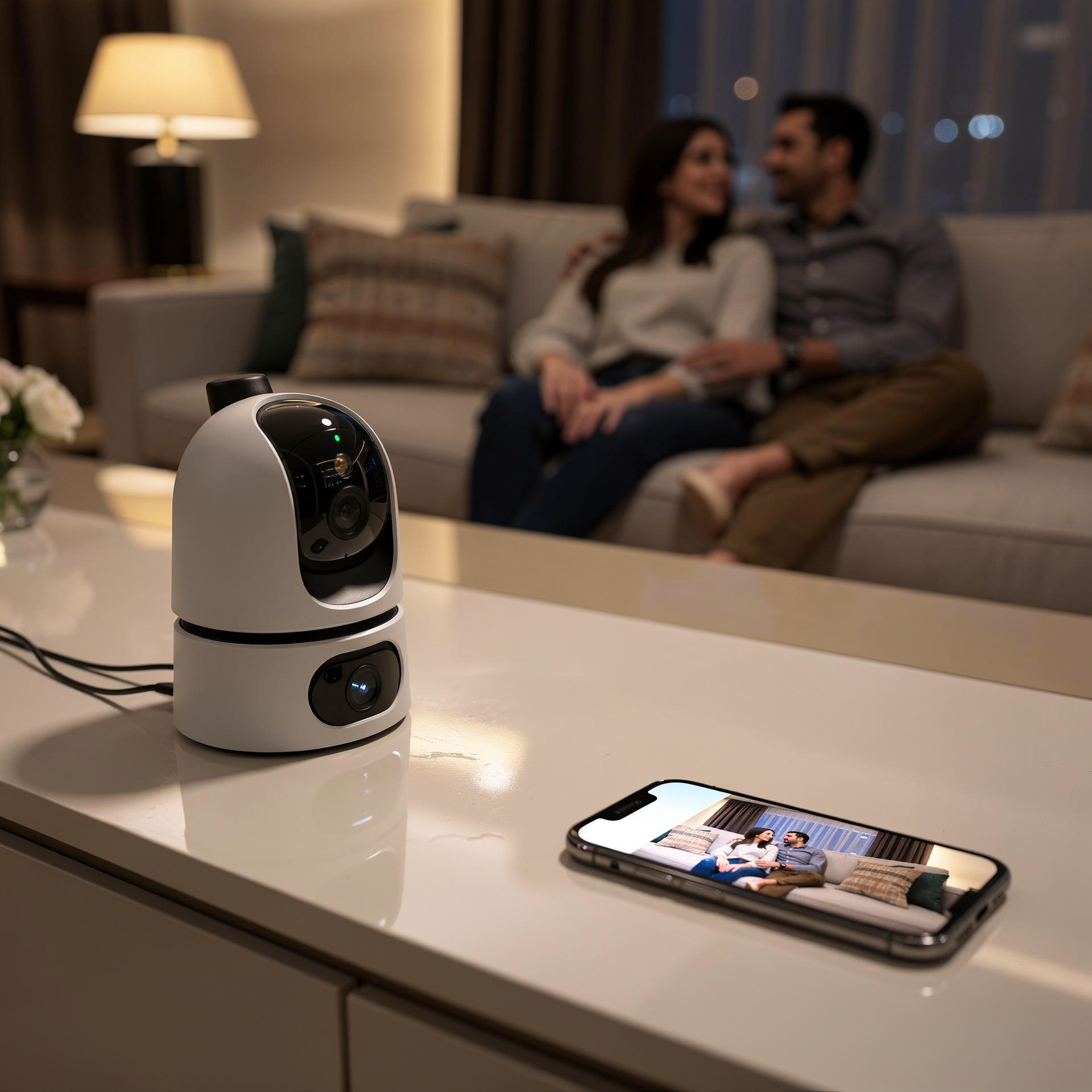 دارای 2 عدد لنز 3 مگاپیکسل دارای دید در شب رنگی دارای آژیر با قدرت 110 دسی بل هشدار صدای نامتعارف بدون نقص در تشخیص انسان و حیوان خانگی صدای دو طرفه برای مکالمه پشتیبانی از کارت حافظه 256 گیگ